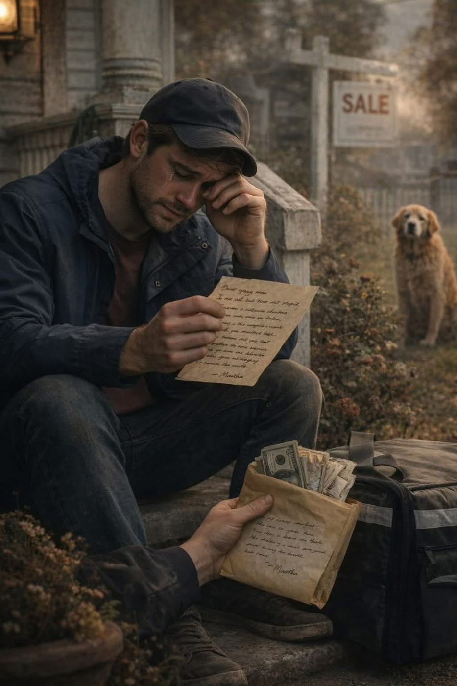 Tôi vẫn lấy đơn và đến nhà bà. Khi bà mở cửa, trong nhà lạnh buốt. Bà mặc áo khoác len dày ngay trong phòng. Bà trông nhỏ hơn, mong manh hơn, da căng trên xương như giấy bạc. Bà đưa tôi hai đô, tay hơi run, nhưng cằm vẫn ngẩng cao.