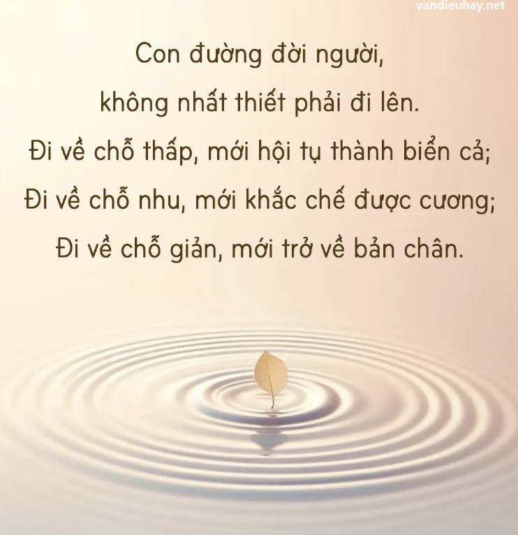 Nước, thứ mềm mại nhất trên thế giới có thể thấm qua cả những tảng đá cứng nhất. “Đi xuống” là một trí tuệ tối thượng của “vượt qua sức mạnh bằng sự mềm mỏng”.